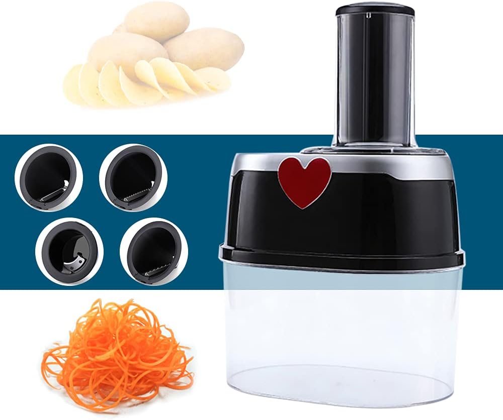 ✅ 4 cuchillas intercambiables – Rebana, tritura, ralla y muele con facilidad. Funciona con pepino, zanahoria, patata, cebolla, chocolate, ajo, frutos secos y más.