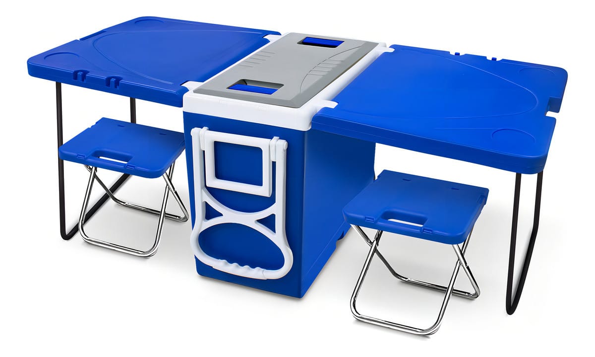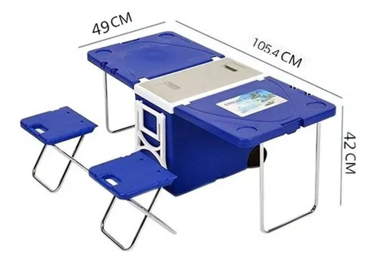 Con 28 litros de capacidad, mantiene tus bebidas frías por horas, mientras que su mesa plegable + 2 sillas integradas te arman un espacio cómodo en cualquier lugar. Todo en un solo producto, listo para llevar y usar.